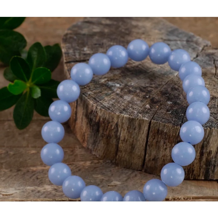 An Angelite bracelet is a piece of jewelry made from Angelite beads. The beads are strung on an elastic or a string and can be worn around the wrist. The bracelet can be worn as a fashion accessory, but also as a tool for healing and spiritual practices. The healing properties of Angelite can be believed to be enhanced when the stone is in contact with the skin, so wearing an Angelite bracelet can be a way to benefit from the stone's properties throughout the day.